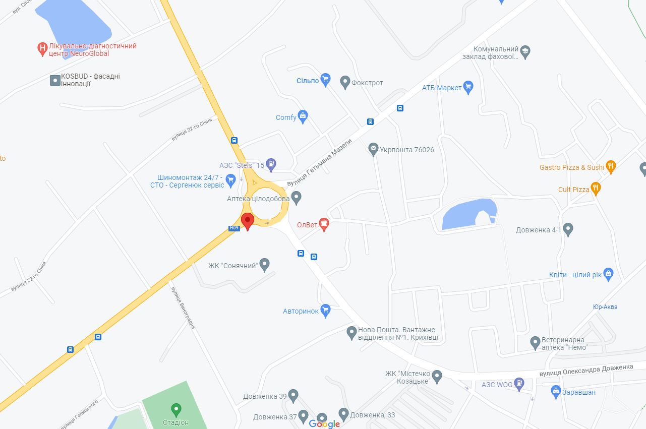 Орієнтир: Мазепи (кільце) виїзд з міста на Богородчан, Надвірну, Яремчу